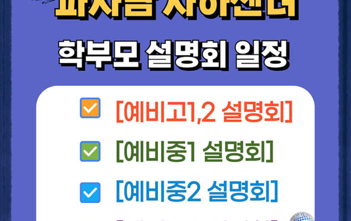 🌟 초등부터 시작하는 진로와 진학의 방향 2025 과사람 초등 진로·진학 설명회 안내 “현명한 엄마의 진로전략이, 우리 아이 꿈에 로드맵이 됩니다.” 초등 시기의 선택이 아이의 학습 방향을 결정합니다. 이제는 **‘공부의 시작’이 아니라 ‘진로의 시작’**을 함께 고민할 [...]