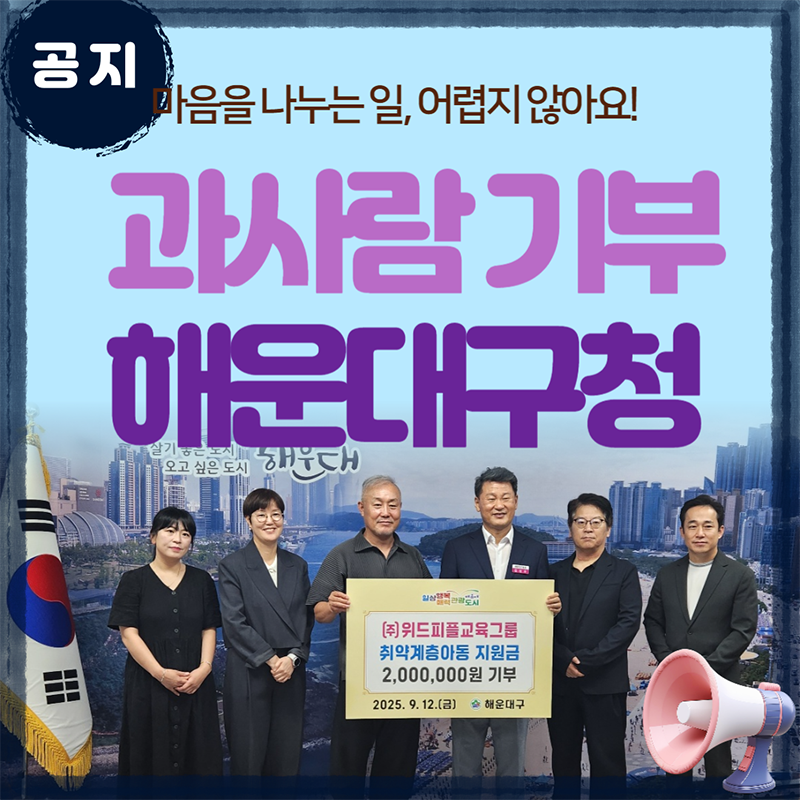 💝 과사람학원, 해운대구청에 사랑의 장학기부