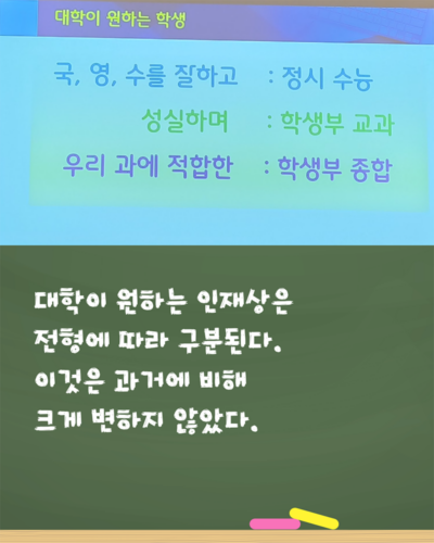 즉, 수능과 학생부 두 가지 축에서 균형 잡힌 역량이 중요하다는 것입니다.