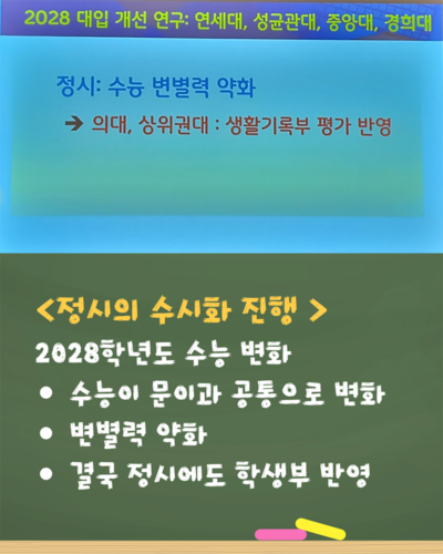 – 수능이 문·이과 구분 없이 공통으로 바뀌며 변별력이 약화됩니다.