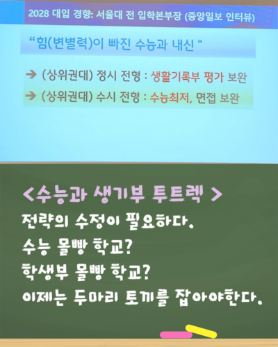 예전처럼 수능에만, 혹은 학생부에만 집중하는 전략은 위험해졌습니다.