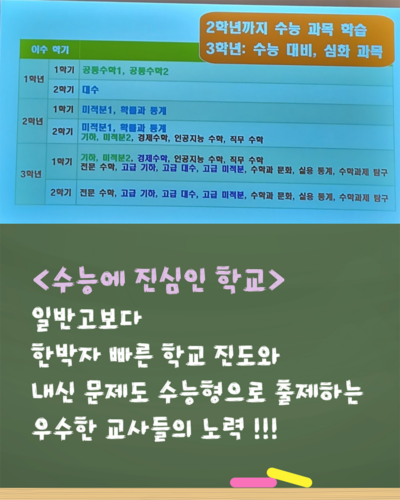 수능과 학생부 준비에 최적화된 학교를 고려해야 합니다.