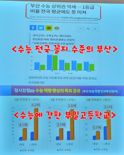 이 세 가지가 부산에서 드물게 수능에 강한 학교라는 점을 보여주었습니다.
