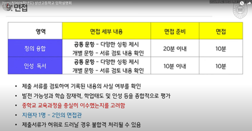 < 상산고 설명회 주제별 요약>