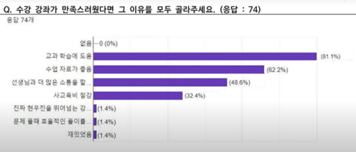 기초 보강부터 심화·실전 풀이까지 다양. 토요 특강으로 생활 리듬 유지, 방학 잔류·자습 및 특강. 만족도: 교과 도움(81%), 자료 우수(62%), 소통 증대(48%), 사교육 절감(32%). |