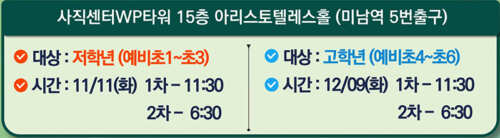 직장인 학부모님을 위해 저녁시간에도 진행됩니다.