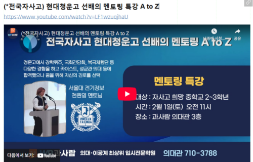 현대청운고 선배의 멘토링 교육영상(60분)을