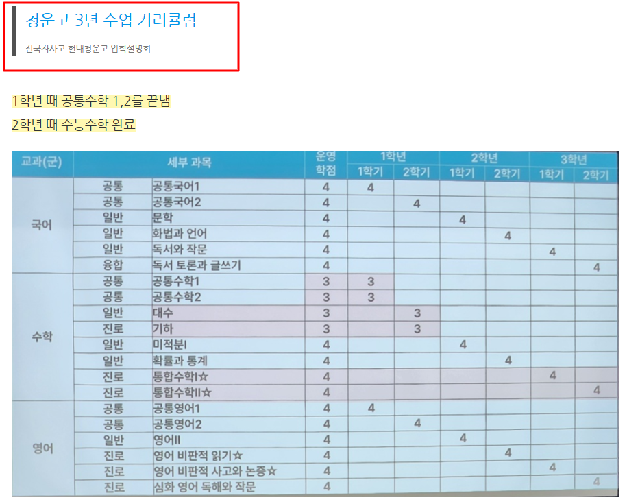 ✔ 현대청운고, 왜 입학 전 준비가 중요한가