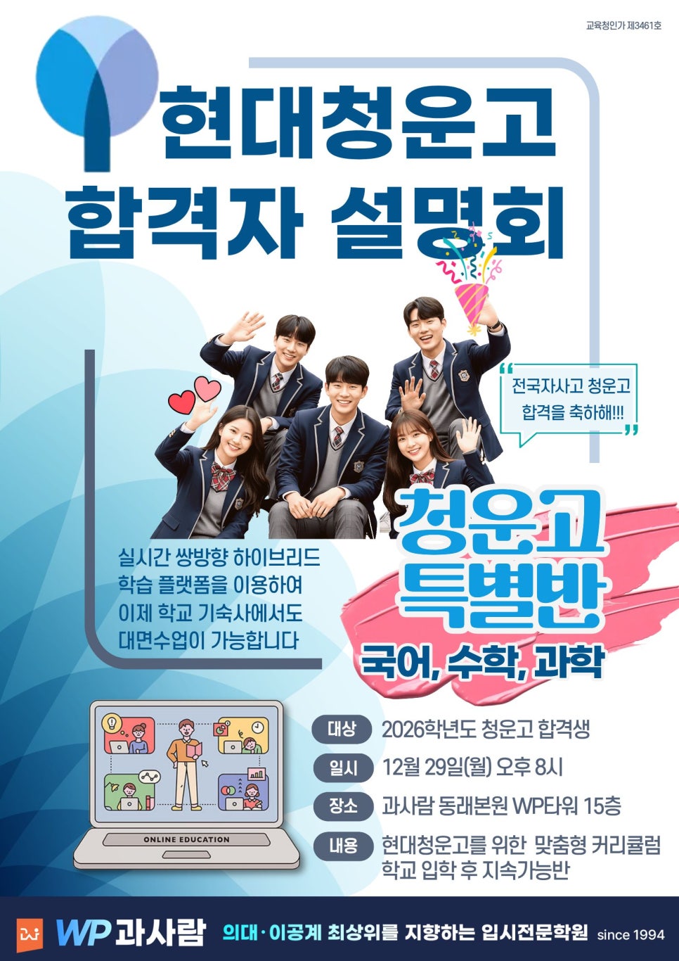 과사람은 현대청운고 합격생과 예비 학부모님을 위한 합격자 설명회를 통해